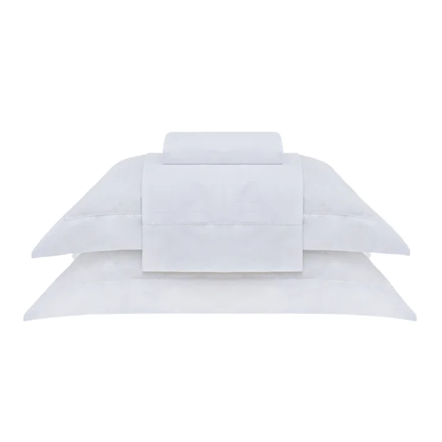 Em tecido 100% algodão Fio Penteado, cetim 300 fios de excelente qualidade. Para altura de colchão até 40cm. A linha Damask Square traz o equilíbrio perfeito entre luxo e conforto. A fina confecção permite a combinação entre um tecido adamascado e um liso, ambos em cetim 300 fios de altíssima qualidade, o que garante um visual elegante e valoriza o brilho natural das peças. Fronha 3 abas com acabamento em ponto ajour; lençol com elástico para altura de colchão até 40cm; sobrelençol com acabamento em ponto ajur.