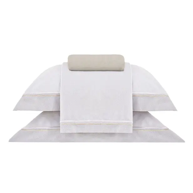 Contém: 1 Sobre Lençol 2,80x275cm + 1 Lençol com Elástico 1,93x2,03x40cm + 2 fronhas 50x70cm.