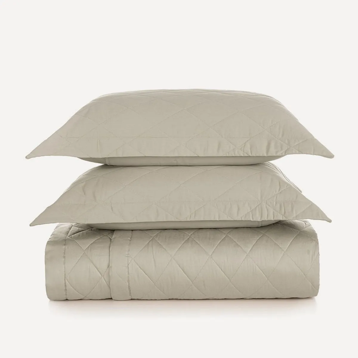 Kit Colcha King Karsten Bossa Areia – Com textura macia e caimento impecável. A colcha de cantos quadrados traz elegância minimalista, enquanto os porta-travesseiros completam com o charme clássico do algodão egípcio.