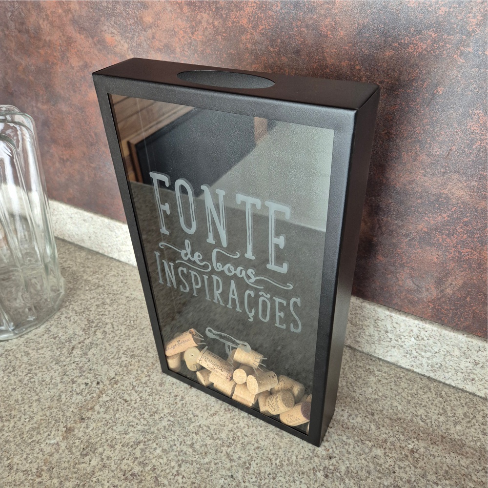 Fonte de boas inspirações. Para colocar as rolhas dos vinhos que bebemos dentro do quadro porta rolhas, para decorar e recordar bons momentos. Produto de aço e vidro fabricado no Brasil. Para fixar em parede de alvenaria com os parafusos e buchas que acompanham o produto. A Coleção Happy Hour é uma celebração à vida. A vida não é só para ser vivida. É para ser celebrada. Reuna a família e os amigos. As rolhas não acompanham o produto.