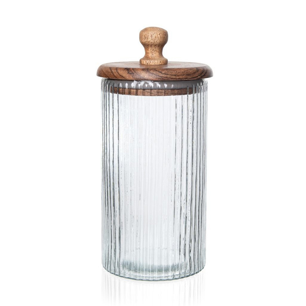 Pote de Vidro Colonial Vidro e Madeira 18cm